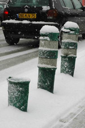 Les plots jaunes sont réservés aux chantiers.