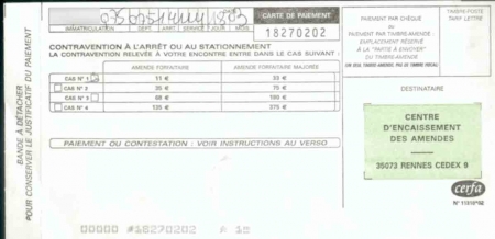 Et la police, comment est-elle informée ? Renseignements pris au Commissariat général du 14e arrondissement (avenue du Maine), la "Nationale" fait circuler l'info sur ses radios. Quant à la "locale", en charge de la circulation (ou plutôt des embouteillages...), les fameuses casquettes à damier mieux connues sous le nom de Lustucru ou de Rivoire & Carré, ben... Euh... Elle s'informe comme elle peut, via radio tam-tam ou à la boulangerie du coin... Pour témoin, ce magnifique papillon ramassé vendredi 18 pour "non-paiement du ticket" dans une rue tranquille du 14e arrondissement...