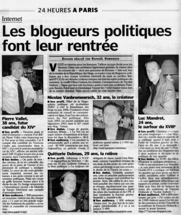 ...Notamment dans Le Parisien (édition du 27 septembre 2007). Merci à Raphaël Domenach qui me consacre au passage quelques lignes (ci-dessous, colonne de gauche - cliquer ici pour télécharger cet article au format pdf).