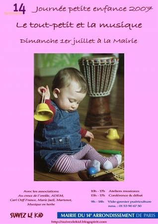 Cette 6e édition, organisée par la Mairie du 14ème et l'association Suivez le Kid sera sous le signe de la musique. Tables rondes, conférences, spectacle et concert accueiileront les familles toute la journée. Des ateliers seront également proposés qui permettront aux enfants de découvrir des instruments et de multiples matériaux sonores. Des associations d'envergure nationale comme Carl Orff seront présentes pour partager leur savoir-faire.