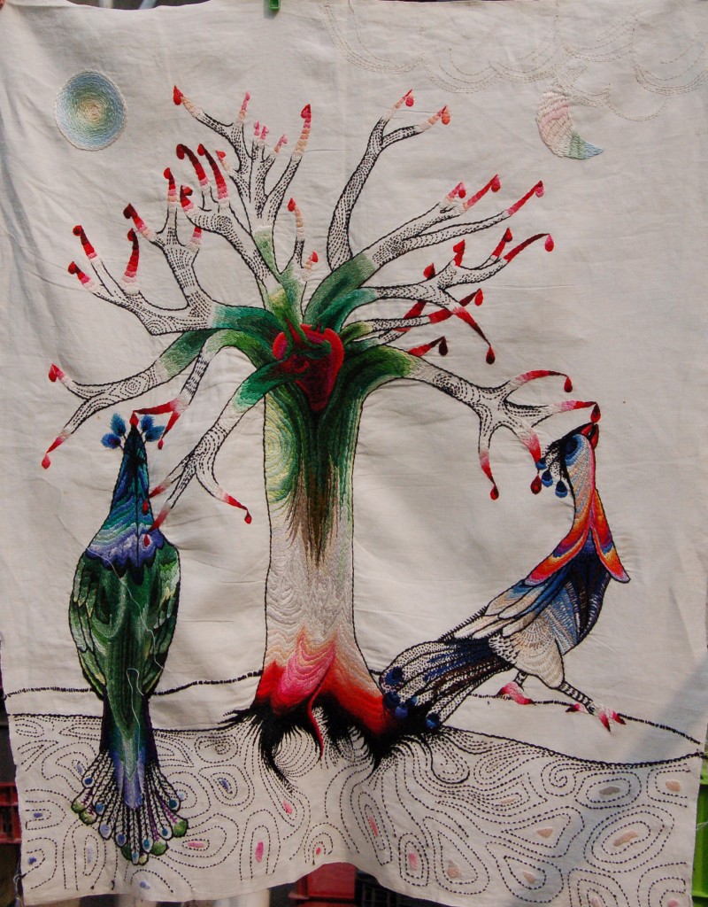 Premiers objets prévus dans ce catalogue d'objets ludiques et poétiques : broderie "art brut" coeur, poterie de Ciboure, collage de Marcel Jean, maquette de coeur, cartes postales d'amoureux kitsch, maquettes de vitrine d'Elizabeth Arden par J Jannot, Hispano Suiza (jouets JEP), cuillère fourchette et cuillère "tétine", insectes habillés, akunitan (toge) Fanti (Ghana) et, dernier arrivé... une banderole de course d'escargot !